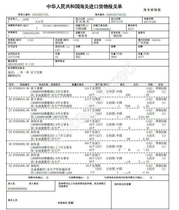 正华代理世界各国汽车配件进口报关,专业代理汽车配件免3C进口报关报检23年,代理美国、意大利、捷克、荷兰、德国、法国、比利时、加拿大、丹麦、墨西哥、日本汽车配件进口清关拥有丰富的操作经验,代理奔驰、宝马、保时捷,路虎,奥迪,凯迪拉克、smart、沃尔沃等汽车配件进口清关,代理汽车配件主要有:传感器、空气管道、摆臂、稳定杆、制动钳、制动助力器、铰链、弹簧、大灯架、保险杠内铁、围板、车窗框架、横拉杆球头、后桥拉杆、机脚胶、冷却器、离合器、平衡杆、仪表台框、USB插座总成等等